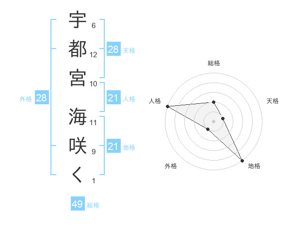 宇都宮 海咲くさんを姓名の画数から五運を鑑定