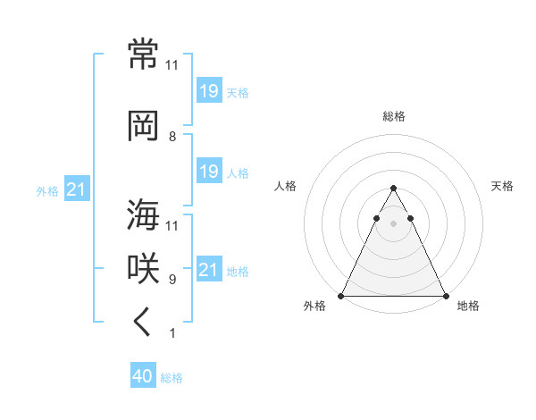 常岡 海咲くさんの外格は21画の5点!