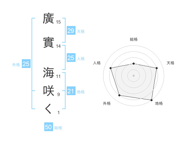 廣實 海咲くさんの天格は29画の4点!