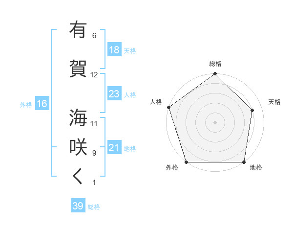 有賀 海咲くさんを姓名の画数から五運を鑑定