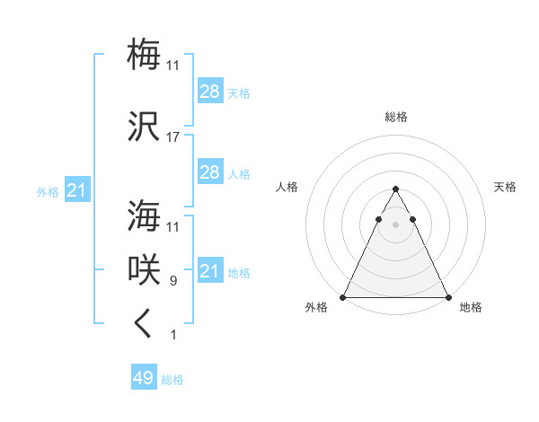 梅沢 海咲くさんを姓名の画数から五運を鑑定
