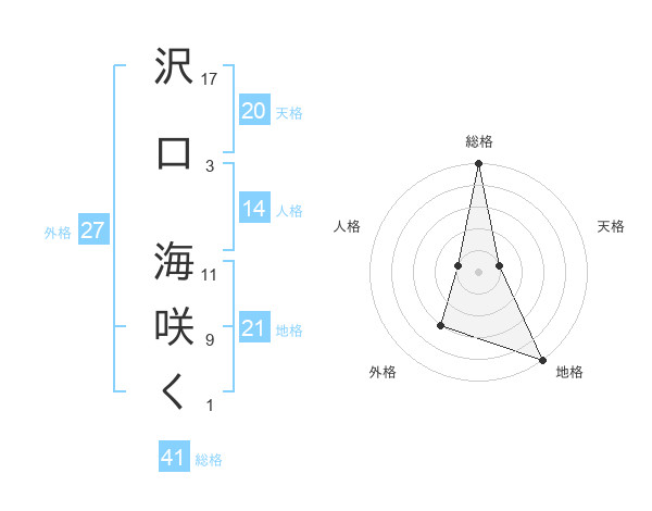 沢口 海咲くさんを姓名の画数から五運を鑑定