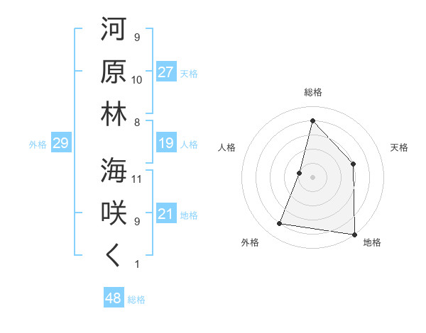 河原林 海咲くさんを姓名の画数から五運を鑑定