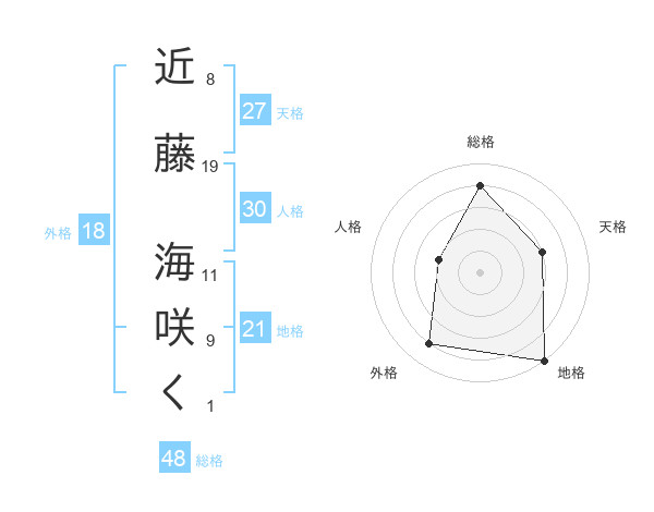 近藤 海咲くさんを姓名の画数から五運を鑑定