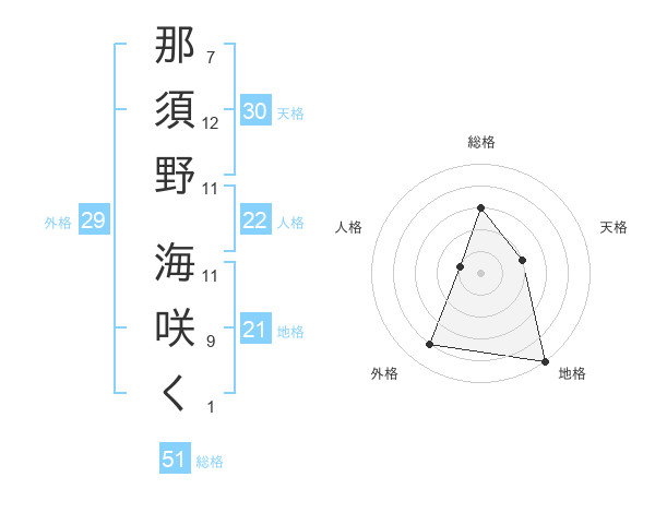 那須野 海咲くさんを姓名の画数から五運を鑑定