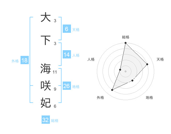 大下 海咲妃さんの総格は32画の5点