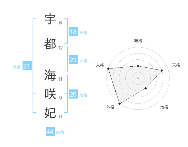 宇都 海咲妃さんを姓名の画数から五運を鑑定