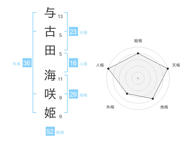 与古田 海咲姫さんを姓名の画数から五運を鑑定