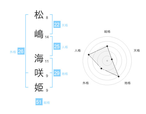 松嶋 海咲姫さんを姓名の画数から五運を鑑定