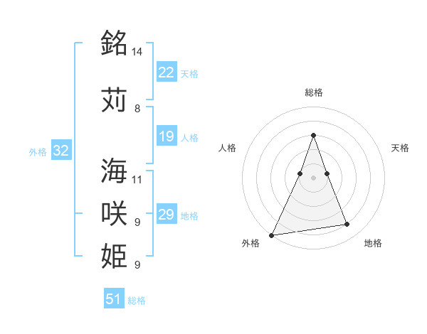 銘苅 海咲姫さんの外格は32画の5点!