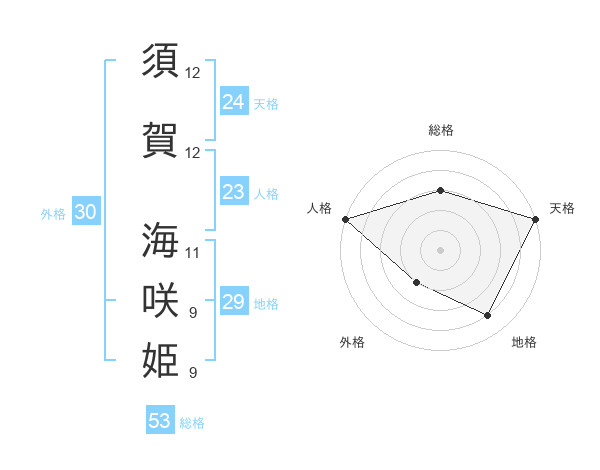 須賀 海咲姫さんの天格は24画の5点!