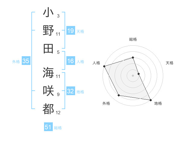 小野田 海咲都さんを姓名の画数から五運を鑑定