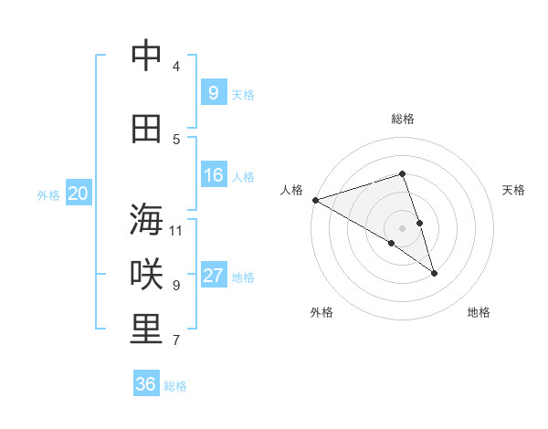 中田 海咲里さんを姓名の画数から五運を鑑定