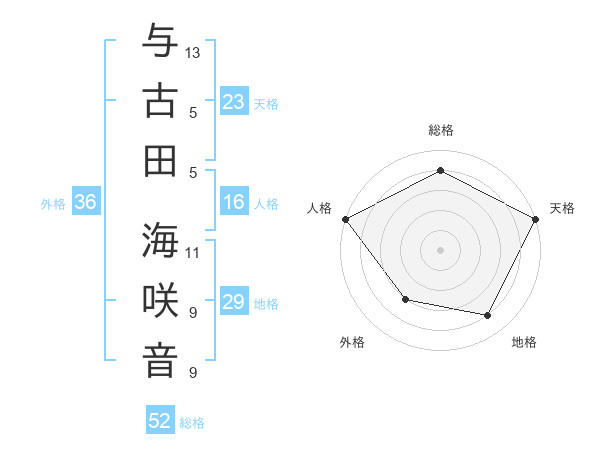 与古田 海咲音さんの天格は23画の5点!