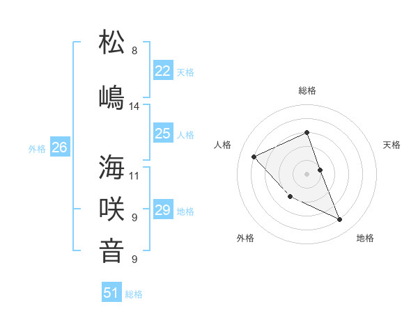 松嶋 海咲音さんを姓名の画数から五運を鑑定