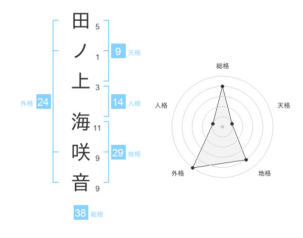 田ノ上 海咲音さんを姓名の画数から五運を鑑定