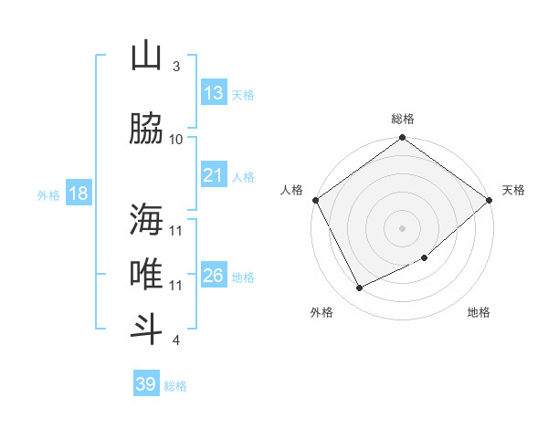 山脇 海唯斗さんを姓名の画数から五運を鑑定