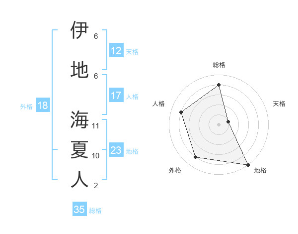 伊地 海夏人さんの天格は12画の1点!