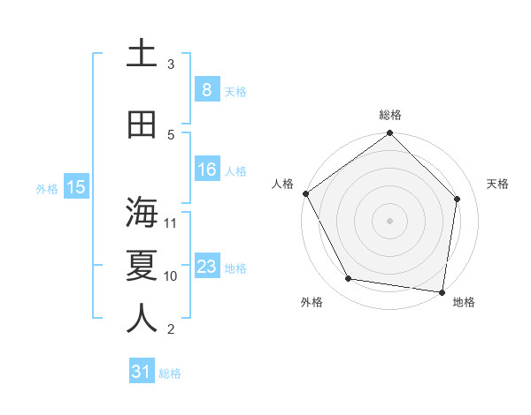 土田 海夏人さんを姓名の画数から五運を鑑定