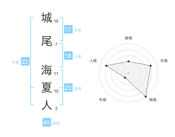 城尾 海夏人さんの総格は40画の2点!