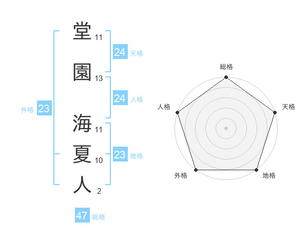 堂園 海夏人さんの総格は47画の5点!