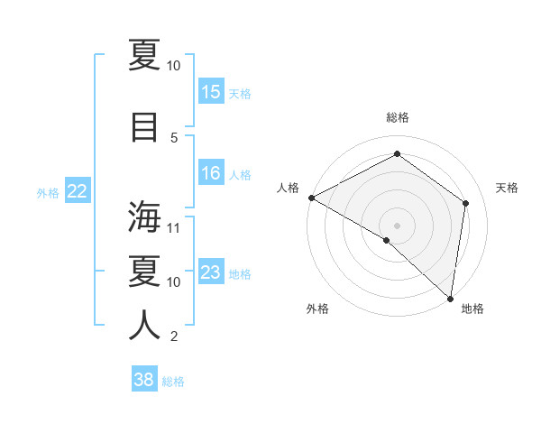 夏目 海夏人さんの外格は22画の1点!