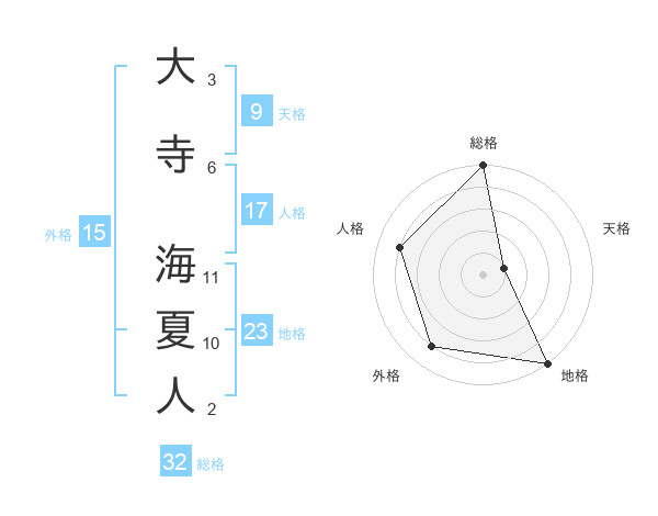 大寺 海夏人さんを姓名の画数から五運を鑑定