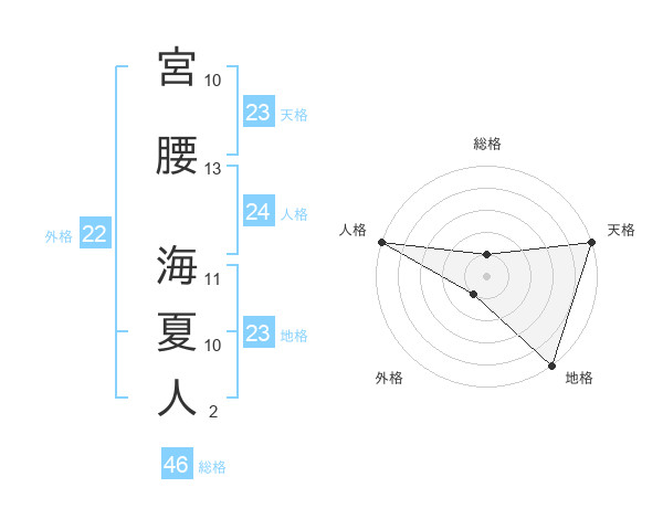 宮腰 海夏人さんの天格は23画の5点!