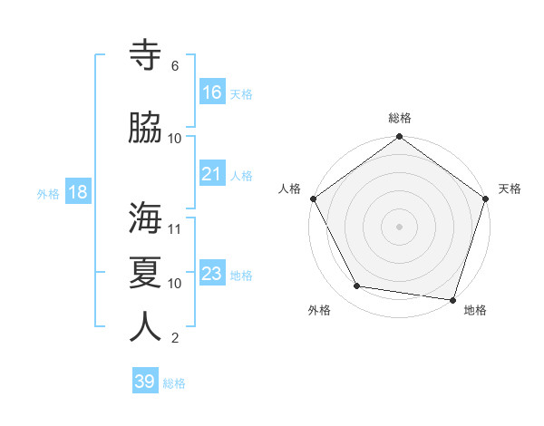 寺脇 海夏人さんを姓名の画数から五運を鑑定