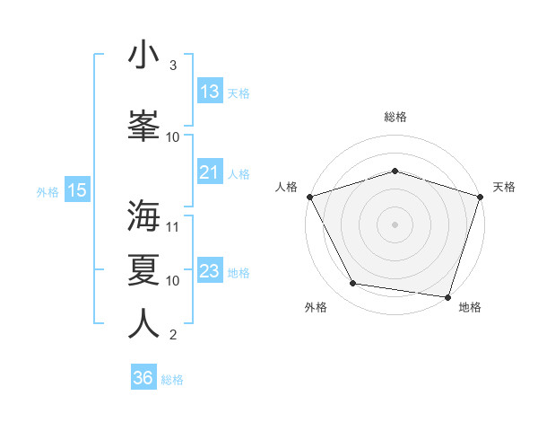 小峯 海夏人さんを姓名の画数から五運を鑑定