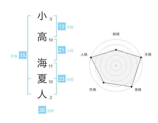 小高 海夏人さんを姓名の画数から五運を鑑定