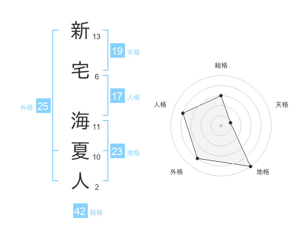 新宅 海夏人さんの総格は42画の3点!