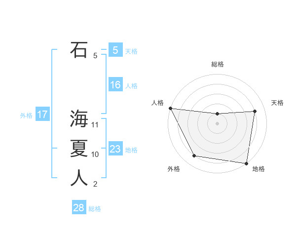 石 海夏人さんの天格は5画の4点!