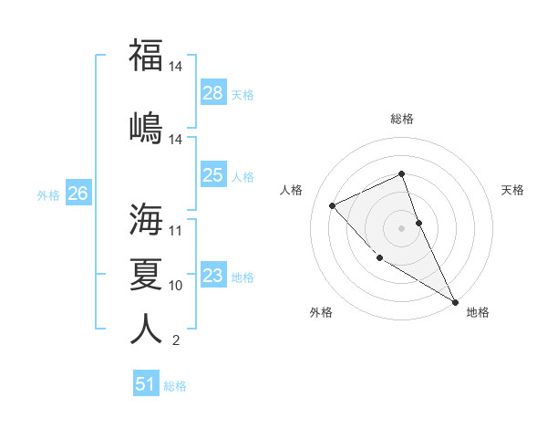 福嶋 海夏人さんを姓名の画数から五運を鑑定