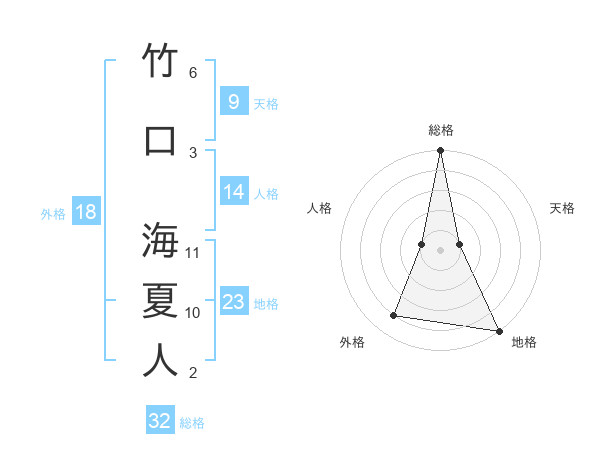 竹口 海夏人さんを姓名の画数から五運を鑑定