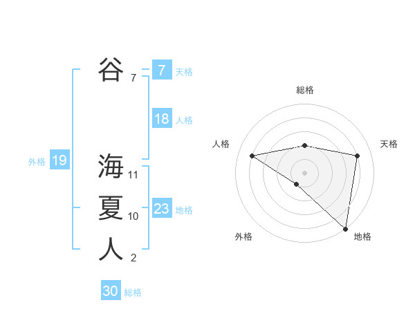 谷 海夏人さんの地格は23画の5点!