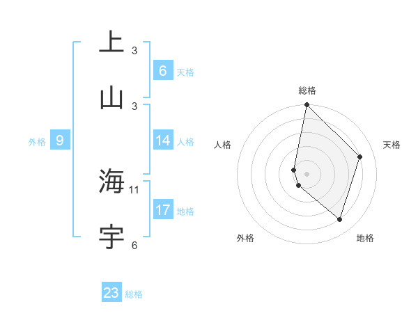 上山 海宇さんの総格は23画の5点!