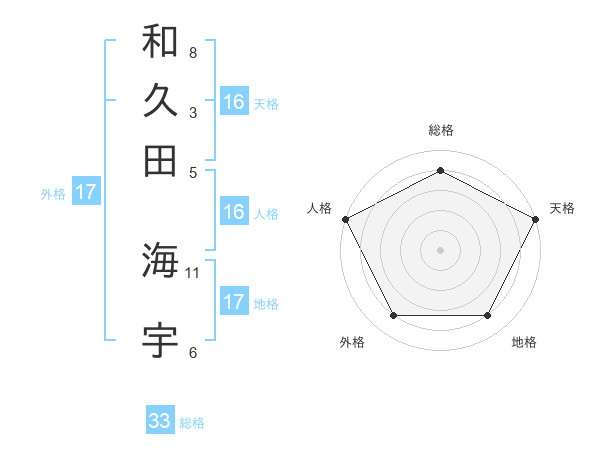 和久田 海宇さんの人格は16画の5点!