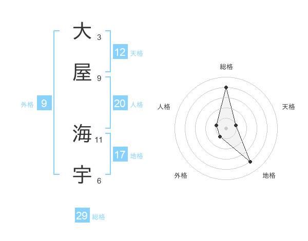 大屋 海宇さんを姓名の画数から五運を鑑定