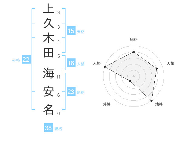 上久木田 海安名さんを姓名の画数から五運を鑑定