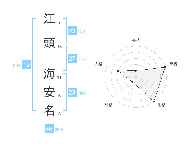 江頭 海安名さんを姓名の画数から五運を鑑定