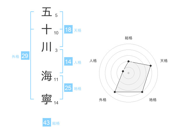 五十川 海寧さんを姓名の画数から五運を鑑定