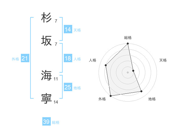 杉坂 海寧さんの外格は21画の5点!