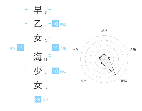 早乙女 海少女さんを姓名の画数から五運を鑑定