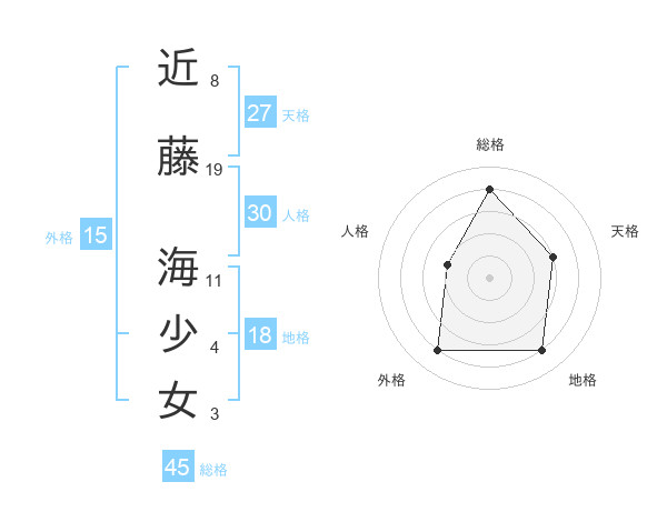 近藤 海少女さんを姓名の画数から五運を鑑定
