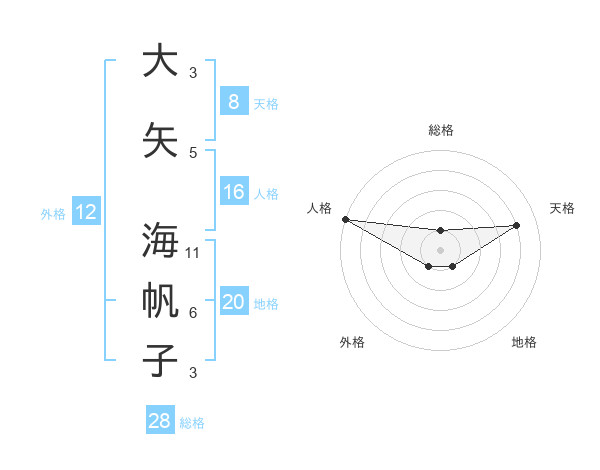 大矢 海帆子さんを姓名の画数から五運を鑑定