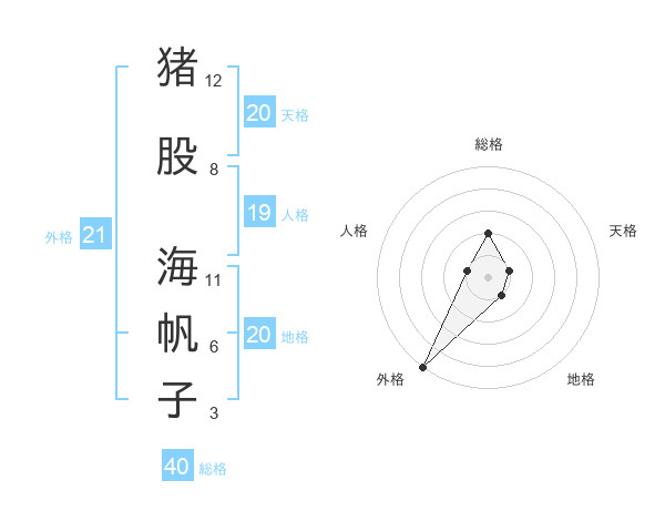 猪股 海帆子さんを姓名の画数から五運を鑑定