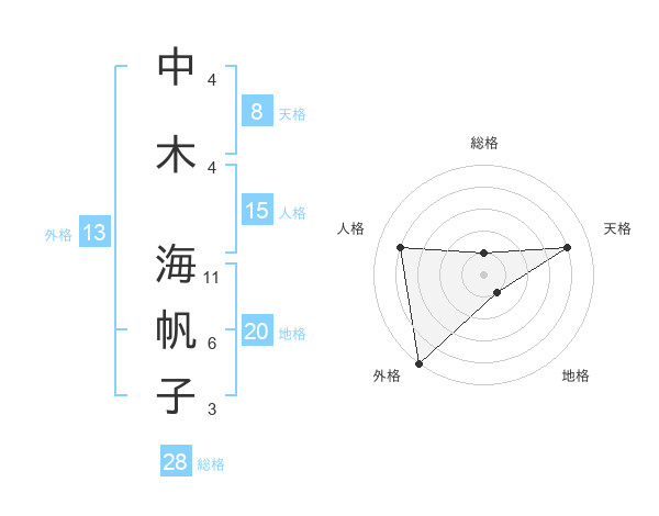 中木 海帆子さんを姓名の画数から五運を鑑定