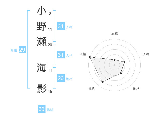 小野瀬 海影さんを姓名の画数から五運を鑑定
