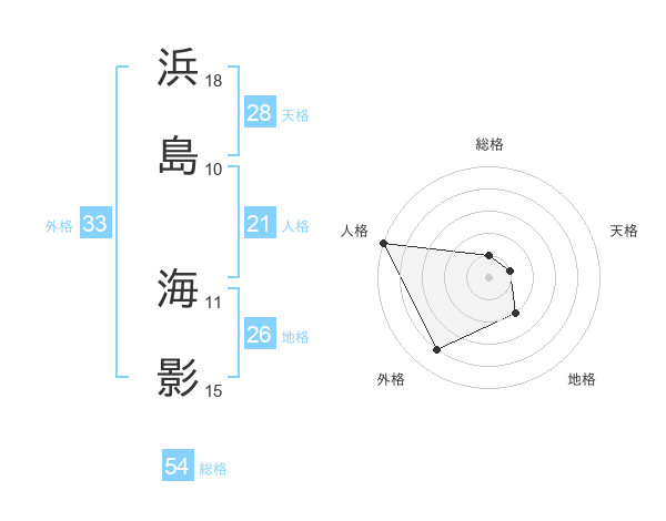 浜島 海影さんの総格は54画の1点